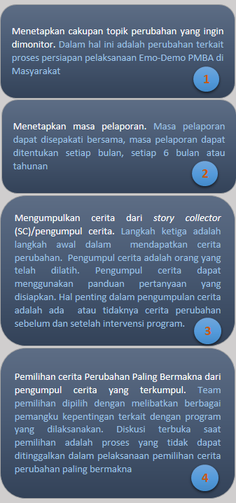 Perubahan paling bermakna dapat dilaksanakan melalui beberapa langkah. Berikut ini adalah langkah-langkah yang perlu dilaksanakan untuk melaksanakan monitoring menggunakan metode perubahan paling bermakna.